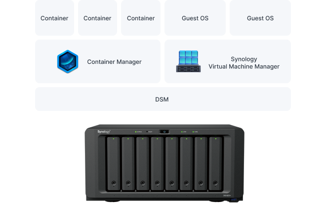 Docker kapsayıcılarını ve sanal makineleri destekleyen uygulama testi ve değerlendirmesi için çok yönlü bir ortam yaratın. Paket ve güvenlik testi için Virtual DSM, uygulamalar, sistemler ve veriler arasında izolasyonu garantileyen özel bir test ortamı görevi görür.